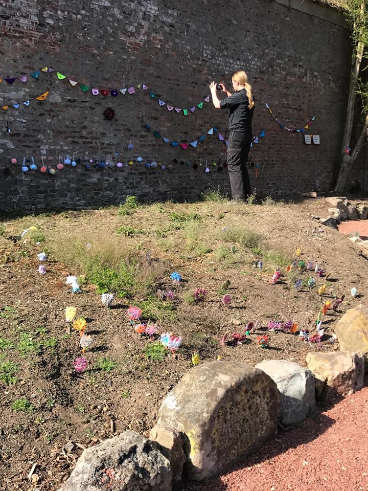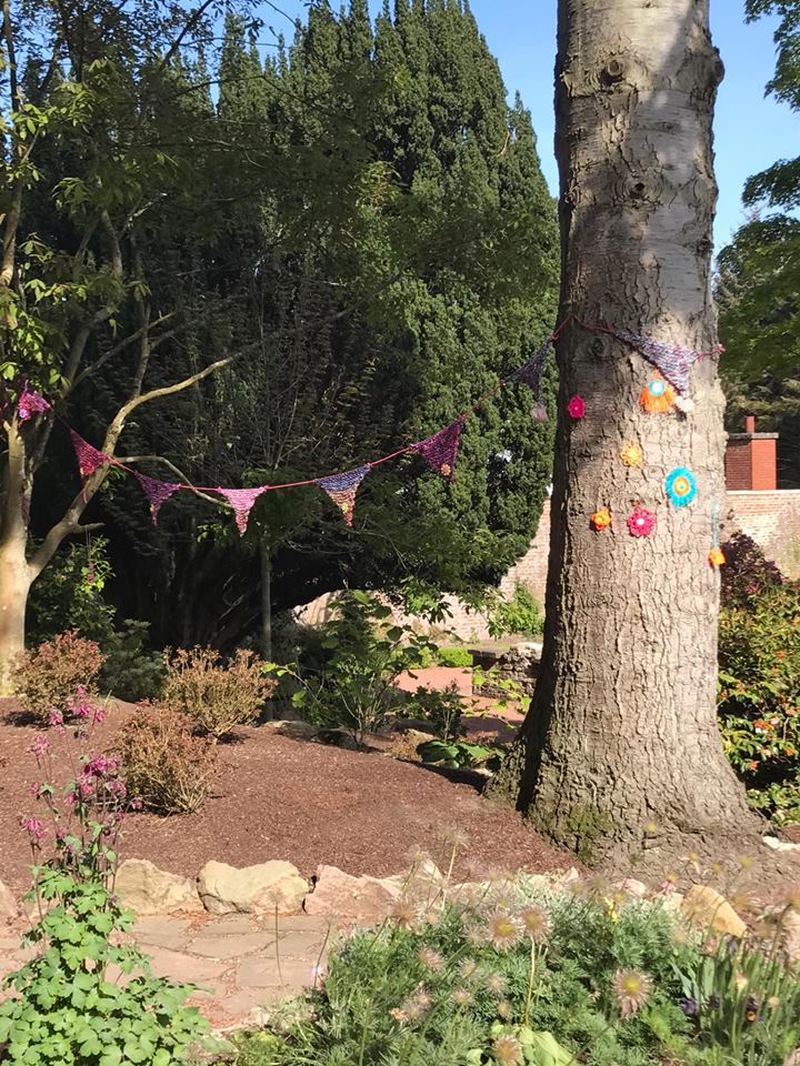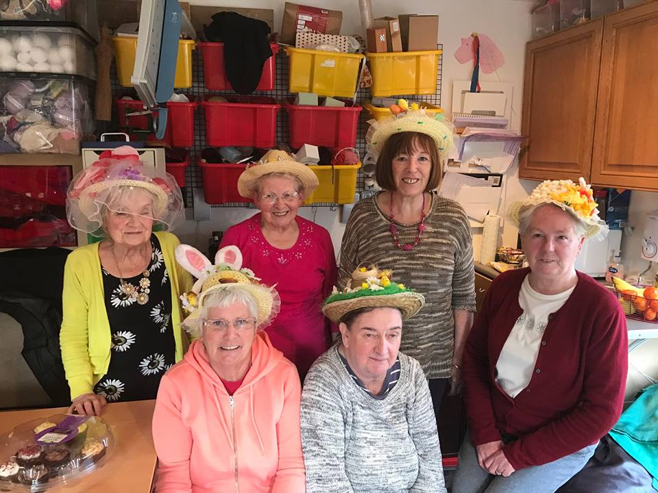 Projects to date have included making bunting and woodland creatures for the recent ‘yarnbomb’ at Belliesle for the voluntary arts week as well as a very successful Easter bonnet competition. The ladies use mostly recycled/up cycled fabrics (curtains etc) which they transform into soft toys and soft furnishings. Their long term goal is to become self-sufficient through the sale of their beautifully made goods at local craft fairs and galas and with that in mind the next project is to create a banner/backdrop for their stall.