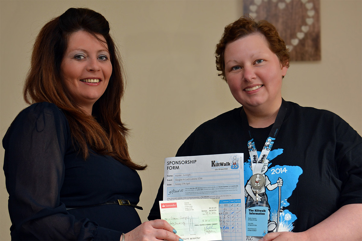 Forehill, Holmston and Masonhill Community Council was proud to support our local resident, Marion Curragh, pictured here being presented with a cheque by FHMCC Chair, Lynne Smith. Marion was a member of Ayr Hospital's A&E kilt walking team whose target of £1,500.00 was smashed with a current running total of £3,500.00